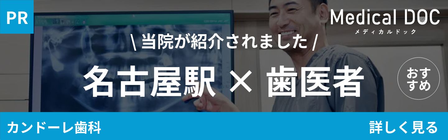 名古屋市中村区、名駅の歯医者カンドーレ歯科は、名古屋駅より徒歩5分、国際センター駅より1分、桜通りに面したお仕事帰りにも通いやすい歯医者です。土曜、日曜も含めた週7日診療しており、平日のご来院が難しい方にもご通院いただきやすくなっております。名古屋、周辺のみなさまの身近なかかりつけ歯科として、虫歯予防から重度症状の治療まで幅広くお応えしています。