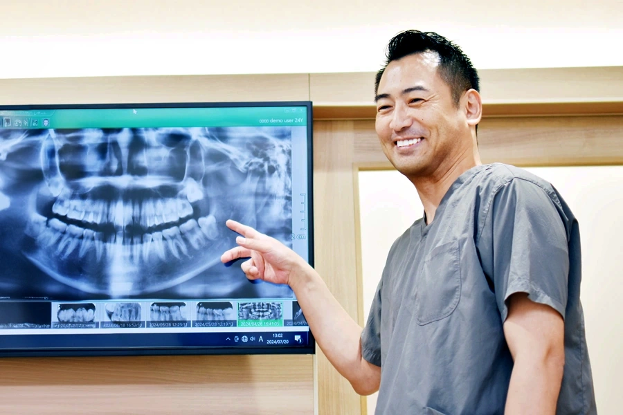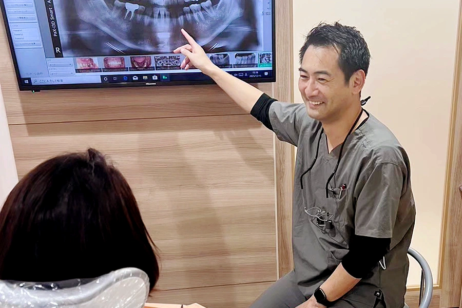 専門用語はできるだけ避け、レントゲン写真や図を活用し、患者様がご自身の状態を理解しやすように丁寧に説明します。複数の治療選択肢とメリット・デメリットを提示し、患者様ご自身が納得して治療を選べるようサポートいたします。