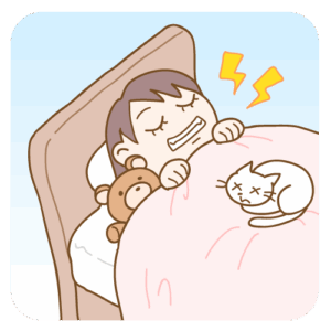 睡眠が浅くなる → 夜間の歯ぎしりが起こりやすくなる