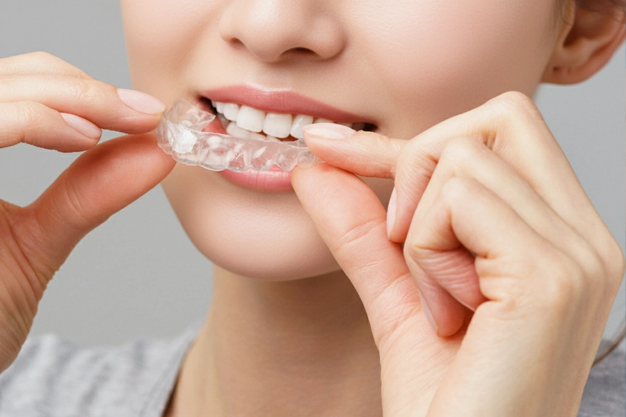 マウスピース矯正は、ワイヤーやブラケットを使わず、透明なマウスピースを装着して歯並びを整える治療法です。ご自身で簡単に着け外しができるため、食事や歯磨きも普段通りに行えます。装置が目立たないので、人目を気にせず矯正を進められるのが大きな特長です。